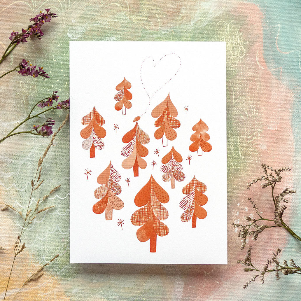Niin metsä vastaa - sydämellinen postikortti, joka sopii myös jouluun